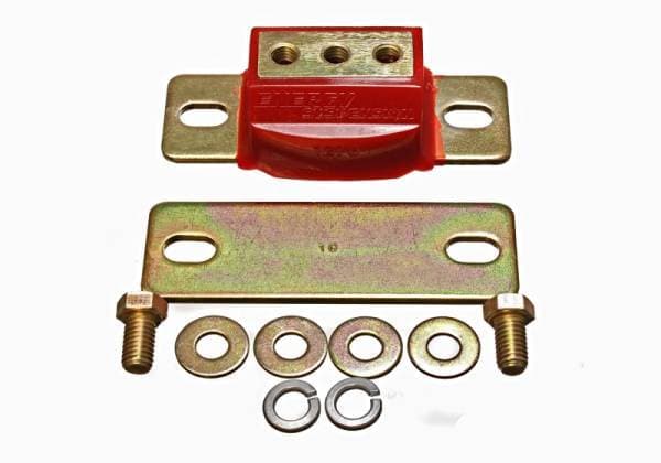 A true performance application component for cars, trucks, hot rods. For racing/competition, yet popularly used for street vehicles when more horsepower is added. Soft running enough to absorb vibrations for street use yet rugged for racing use. Helps control torque on high performance vehicles. Maintains proper drive shaft angle to help prevent early wear and unexpected power train damage. Replaces the original, short lived and typically too-soft rubber mounts and outdates those hard-running metal transmission mounts. Resistant to under vehicle fluid oils, coolants and road contaminants. Made of Energy's Hyper-Flex™ performance polyurethane and heavy duty hardware - for added durability.