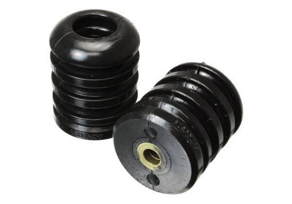Energy Suspension® performance bump stops help cushion a collapsing suspension, preventing bottoming-out and expensive vehicle damage. Hyper-Flex™ performance polyurethane bump stops for control arms, traction bars, leaf springs, etc. are guaranteed to last longer and operate more efficiently than original rubber stops.The smaller, general purpose bullet shaped snubber is ideal for control arms. The low profile button head is for use when clearance is limited. Our large competition race style bump stops smooth out compression better and have a large reinforced metal plate welded to the mounting plate and molded-in. Each style is specially designed for a perfect and custom fit and each style has it's own durometer, hardness, characteristics. Energy's wide selection of bump stops are available in red or black color.
