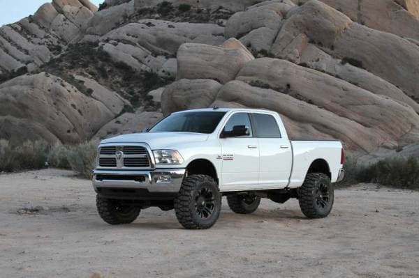 This high quality system has been designed to retain the factory load carrying capacity and ride of the vehicle with minimal parts. The stock coil springs are retained with angular steel spacers to retain the factory front spring bow. This is an important feature as Chrysler designed the bow to aid in their unique alignment specs and ride quality. Flat spacers do not provide this. The rear coil springs are also retained with steel spacers keeping the weight carrying capacity of the vehicle intact. A Fabtech exclusive on this system is the steel front bump extensions. They will not blow out like extra long urethane bump stops found in other aftermarket suspensions. No chance of spring and shock damage with the Fabtech'steel extensions. The factory Radius Arms are relocated with heavy duty 1/4'' thick steel brackets for proper caster with the 5'' lift. Super stout front and rear Track Bar drop brackets center the axles under the vehicle with the new ride height. The 5'' Basic System will clear 37'' tall tires and includes front and rear 2.25 Dirt Logic Stainless Steel shocks. Estimated installation time - 4.5 Hours. 10 holes to drill for installation. No Welding Required.