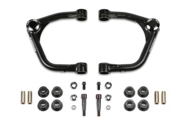 Fabtech's Uniball Upper Control Arms provide increased strength to the front suspension by replacing the stock ball joint upper arms that can become worn and eventually fail under aggressive offroad use. These heavy duty upper arms are designed for longevity in rugged offroad conditions. They also feature additional caster compared to stock upper arms for superior on road use with oversized tires. The top quality construction of these arms include .120 in. wall 1.50 in. OD 4130 Chromoly tubing and American made 1 in. FK Stainless PTFE lined Uniballs. The 17-4 Stainless Steel heat treated Uniball pins fit into the factory ball joint tapers without modification to the spindle for easy return to stock feature. Fabtech uses 17-4 Stainless steel for the misalignments that provide proper clearance of the 1 in. Uniballs throughout the travel range. On the frame side of the upper arms, there are quality urethane bushings that help reduce road noise while providing longevity. Fabtech's Uniball Upper Control Arms are an excellent upgrade to stock or lifted suspension systems for drivers that demand the best for their vehicle.