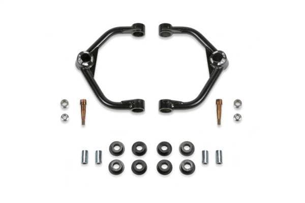 Fabtech's Uniball Upper Control Arms provide increased strength to the front suspension by replacing the stock ball joint upper arms that can become worn and eventually fail under aggressive offroad use. These heavy duty upper arms are designed for longevity in rugged offroad conditions. They also feature increased caster compared to the stock arms. The increased caster helps to balance steering effort with oversized tires. The top quality construction of these arms includes .120 in. wall 1.25 in. OD 4130 Chromoly tubing steel tubing. This is superior to the stock plastic arms. Yes, the stock arms are plastic. Fabtech arms will add rigidity and strength to the Ram suspension. High quality 1 in. FK Stainless PTFE lined Uniball bearings are utilized in place of the small factory ball joints and allow for increased travel without bind. These super stout Ram upper control arms are designed for strength in offroad conditions while providing a more positive on road feel. These heavy duty arms attach to the frame with quality urethane bushings. This helps reduce road noise with less deflection than stock rubber resulting in a more positive road feel. Fabtech's Uniball Upper Control Arms are an excellent upgrade to stock or lifted suspension systems for drivers that demand the best for their vehicle.