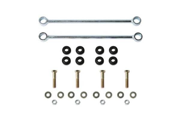 Fabtechs 8 in. 4 Link Conversion System for the Ford Super Duty is designed to provide maximum suspension performance for both on and offroad use. The system replaces the factory Radius Arm suspension with heavy duty 4 Link components for increased strength and functionality. The system wi ll provide less caster change throughout the travel range which benefits on road driving. When offroad the 4 Link system will provide more articulation than a Radius Arm for increased terrain traversing at all speeds. Unique to this 8 in. system is Fabtechs extended length Track Bar to address the hyper sensitive steering box of the late model Super Duty. Fabtech is the only manufacturer with this exclusive system that offers proper steering performance. Fabtechs extended length Track Bar is 4 in. longer than stock and is offset to the driver side with a stout 1/4 in. thick steel mounting bracket. This design helps keep the Track Bar and Draglink closer to parallel than the factory angles to reduce push in the steering. The Track Bar allows for full lock steering of 15.50 wide tires w/ 4-3/4 in. BS wheels. Included in this system is the massive Dirt Logic 4.0 Resi Coilover Conversion for outstanding damping capacity offroad with a quality on road ride. The Coilover bolts in place of the factory coil spring without removal of the coil spring bucket. The giant 4 in. diameter aluminum remote reservoir mounts horizontally above the Coilover to allow for full compression travel with oversized tires. The Dirt Logic 4.0 Resi Coilover is the biggest and baddest on the market for the Ford Super Duty. Fabtechs 4 Link System has been proven in over 10 years of service in rugged commercial and military applications to ensure long life on your daily driven vehicle. High quality components with properly designed suspension geometry makes this Super Duty system the pinnacle of all suspensions. Comes with a free 5 year 60,000 mile powertrain warranty.