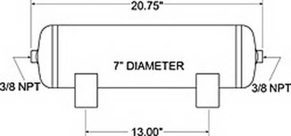 This Firestone air tank provides a source of compressed air for an air spring system. Tank has 3-gallon capacity and (2) 3/8 in. NPT ports. Tank is enamel coated to resist corrosion, tested to be SAE J10 compliant and capable of 150 psi. Features: Provides compressed air source for an air helper spring system Allows for faster inflation of air springs Holds 3 gallons of compressed air Includes (2) 3/8 in. NPT ports Steel tank with brass fittings Resists corrosion with internal and external enamel coating Is SAE J10 compliant Operates at up to 150 psi of maximum pressure Specs: Tank dimensions: 20.75 in. long x 7 in. diameter Tank capacity: 3 gallons Inflation ports: 3/8 in. NPT PSI: Maximum of 150 2-Year limited warranty