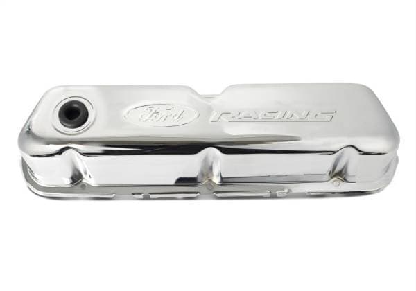 Valve Cover; Stamped Steel; Chrome; Embossed Ford Racing Logo