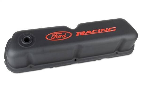 Valve Cover; Stamped Steel; Black Crinkle Finish; Ford Racing Logo; Include Baffles/Oil Grommets