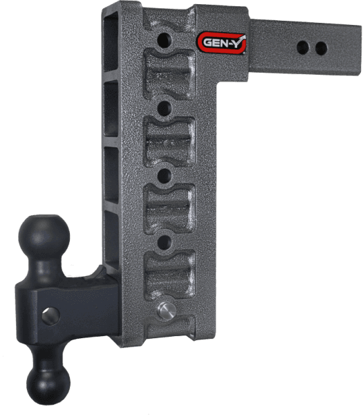 GEN-Y's Mega-Duty Adjustable Drop Hitches start at 10,000 LB towing capacity and go up to 32,000 LB towing capacity. There are multiple drop options as well depending on your trailer towing needs.