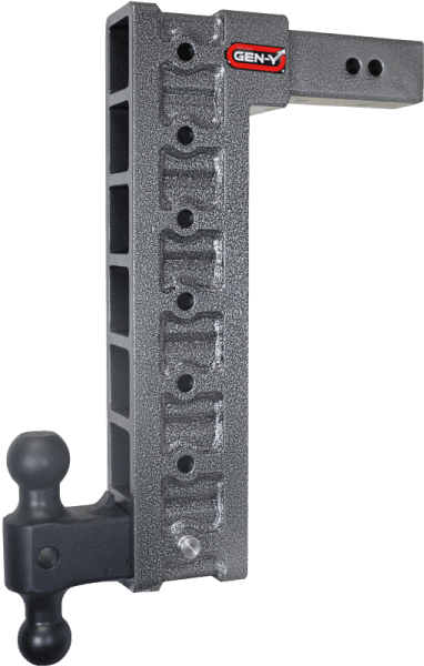 GEN-Y's Mega-Duty Adjustable Drop Hitches start at 10,000 LB towing capacity and go up to 32,000 LB towing capacity. There are multiple drop options as well depending on your trailer towing needs.