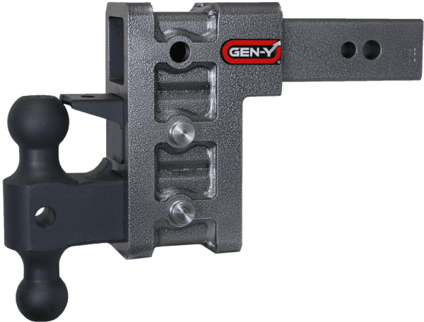 GEN-Y's Mega-Duty Adjustable Drop Hitches start at 10,000 LB towing capacity and go up to 32,000 LB towing capacity. There are multiple drop options as well depending on your trailer towing needs.