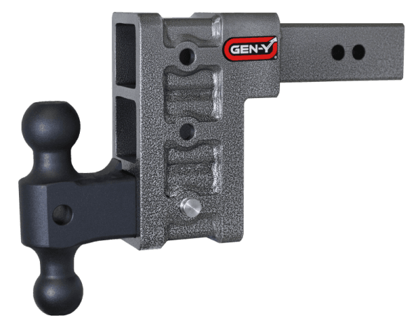 GEN-Y's Mega-Duty Adjustable Drop Hitches start at 10,000 LB towing capacity and go up to 32,000 LB towing capacity. There are multiple drop options as well depending on your trailer towing needs.