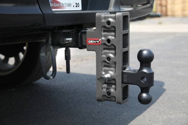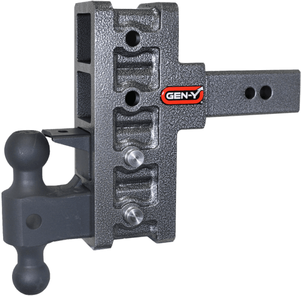 GEN-Y's Mega-Duty Adjustable Drop Hitches start at 10,000 LB towing capacity and go up to 32,000 LB towing capacity. There are multiple drop options as well depending on your trailer towing needs.