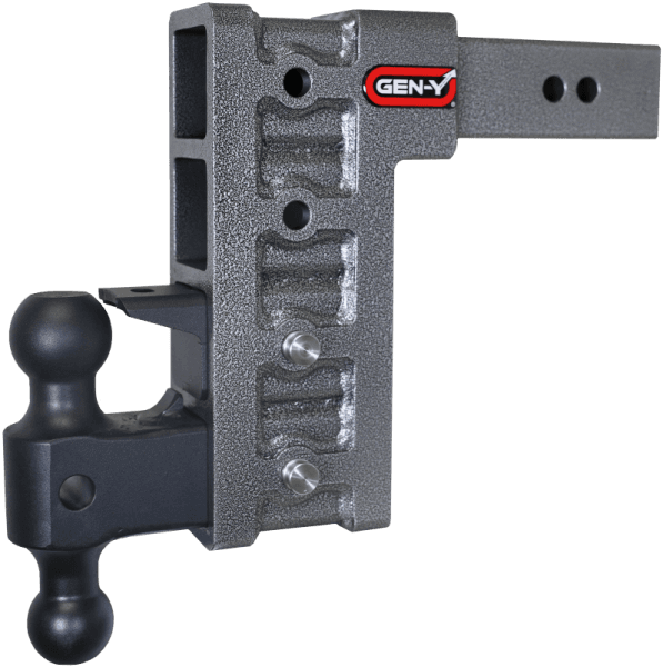 GEN-Y's Mega-Duty Adjustable Drop Hitches start at 10,000 LB towing capacity and go up to 32,000 LB towing capacity. There are multiple drop options as well depending on your trailer towing needs.