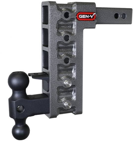GEN-Y's Mega-Duty Adjustable Drop Hitches start at 10,000 LB towing capacity and go up to 32,000 LB towing capacity. There are multiple drop options as well depending on your trailer towing needs.