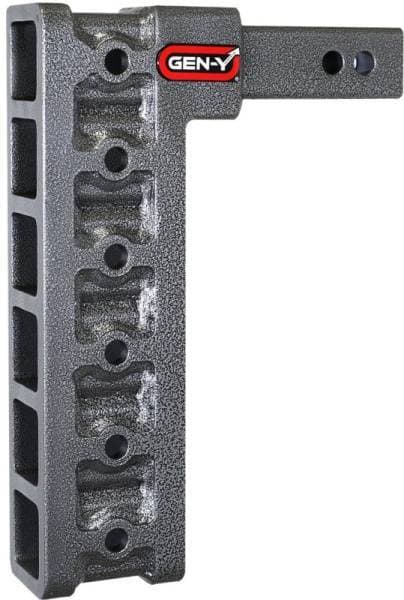 GEN-Y's Mega-Duty Adjustable Drop Hitches start at 10,000 LB towing capacity and go up to 32,000 LB towing capacity. There are multiple drop options as well depending on your trailer towing needs.