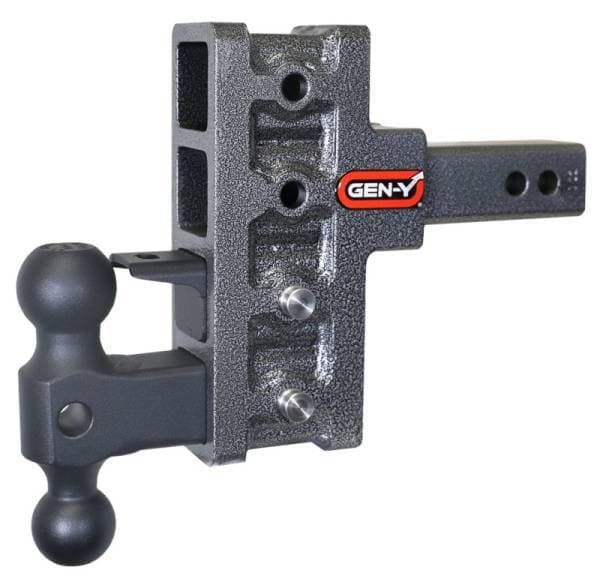 GEN-Y's Mega-Duty Adjustable Drop Hitches start at 10,000 LB towing capacity and go up to 32,000 LB towing capacity. There are multiple drop options as well depending on your trailer towing needs.