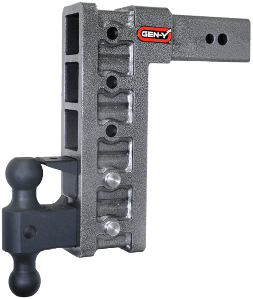 GEN-Y's Mega-Duty Adjustable Drop Hitches start at 10,000 LB towing capacity and go up to 32,000 LB towing capacity. There are multiple drop options as well depending on your trailer towing needs.