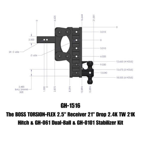The BOSS TORSION-FLEX 2.5" Receiver 21" Drop 2.4K TW 21K Hitch & GH-061 Dual-Ball & GH-0101 Stabilizer Kit