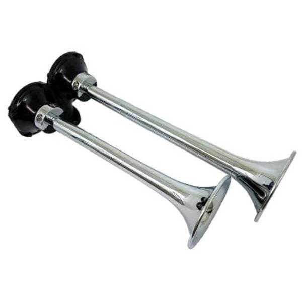 Chrome-plated dual roof mount truck horn (no solenoid included).