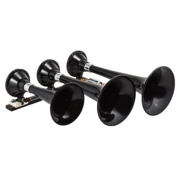 The USTL-230 is the solution for truck owners who have lifted their truck and are running oversize tires and are not using the spare tire location. The entire system mounts on a custom designed bracket that is supported by the OEM factory spare tire winch. The kit includes The Beast Model 230 Triple Train Horns, a heavy duty 100% duty cycle waterproof air compressor, 3-gallon air tank and every part needed for simple, bolt-on installation on most full size trucks. Can be upgraded to be even louder by adding a P/N 6885 BlastMaster Plus Valve Upgrade Kit. System also includes a quick connect tire inflator with air hose and storage bag.