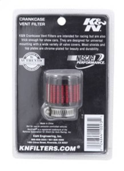 K&N crankcase vent filters are perfect for racing applications, vintage cars or individuals who want to add some aesthetics to their classic carbureted engine. The 62-1560 crankcase vent filter has a K&N black rubber top and rubber base. The filter is 1-1/8 inches tall, 1-3/8 inches in outside diameter with a 3/4 inch flange which is designed to clamp directly on to metal or plastic tubing. This air filter is constructed with non-woven synthetic filter media so it can be cleaned and reused repeatedly.