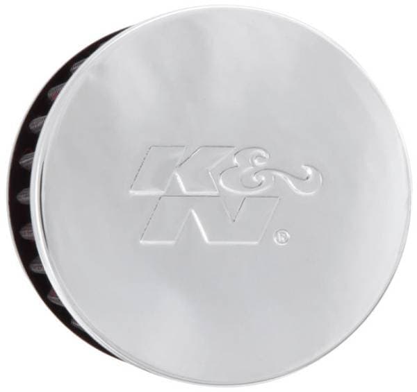 K&N crankcase vent filters are perfect for racing applications, vintage cars or individuals who want to add some aesthetics to their classic carbureted engine. The 62-1440 crankcase vent filter has a K&N embossed chrome-plated steel top with a black rubber base. The filter is 2-1/2 inches tall, 3 inches in outside diameter with a 1-3/8 inch flange which is designed to push on to the existing rubber breather grommets. Constructed with a synthetic filter media it can be cleaned and reused repeatedly.