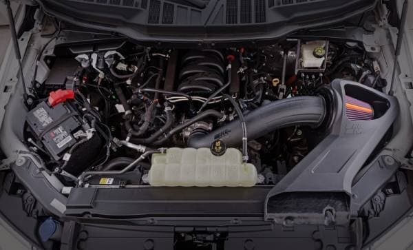This K&N NextGen cold air intake system is engineered for Ford F150 V8 5.0L F/I. A high-density polyethylene (HDPE) rotationally molded tube helps increase the volume of airflow by 46.24% to your engine and provides an increase of 15.22 horsepower and 20.37 torque with no tune required. This intake system is paired with a washable, reusable High-Flow LIFETIME Air Filter featuring oiled cotton filter media. The oversized, conical design allows you to go up to 100,000 miles between filter services under normal highway driving conditions. A custom designed NextGen air box helps protect intake air from the high temperature of your engine bay, and the entire system can typically be installed in less than 60 minutes.