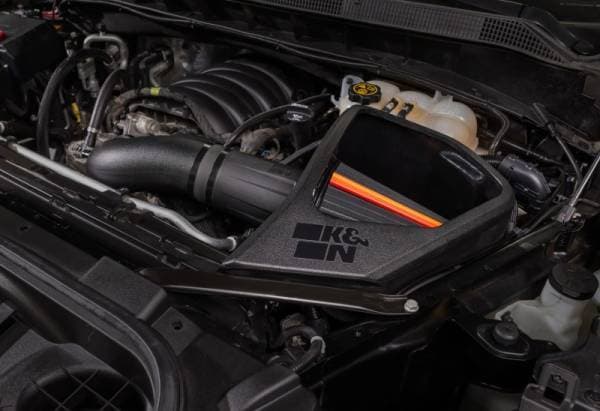 This K&N NextGen cold air intake system is engineered for Chevrolet Silverado 1500 V8 5.3L/6.2L. A high-density polyethylene (HDPE) rotationally molded tube helps increase the volume of airflow by 35% CFM GAIN to your engine and provides an increase of 10.4 horsepower and 10.9 torque with no tune required. This intake system is paired with a washable, reusable Dryflow LIFETIME Air Filter featuring an oil-free synthetic media. The oversized, conical design allows you to go up to 50,000 miles between filter services under normal highway driving conditions and has an easy oil-free two step cleaning process for convenience. A custom designed NextGen air box helps protect intake air from the high temperature of your engine bay, and the entire system can typically be installed in less than 60 minutes.