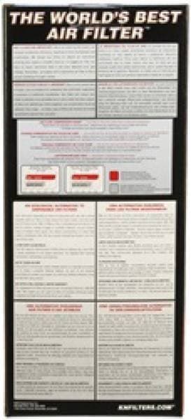 K&N washable, reusable High-Flow Air Filters feature a state-of-the-art design of layered, oiled cotton media engineered to improve airflow and capture contaminants, and are designed to provide an increase in horsepower. Each performance air filter is reusable, engineered to last for the entire lifespan of your vehicle, and backed by K&N's 10-Year/Million Mile Limited Warranty. K&N drop-in replacement filters are designed to install easily into your factory air box. Upgrade today and start enjoying superior airflow and superior performance from K&N's most popular product!