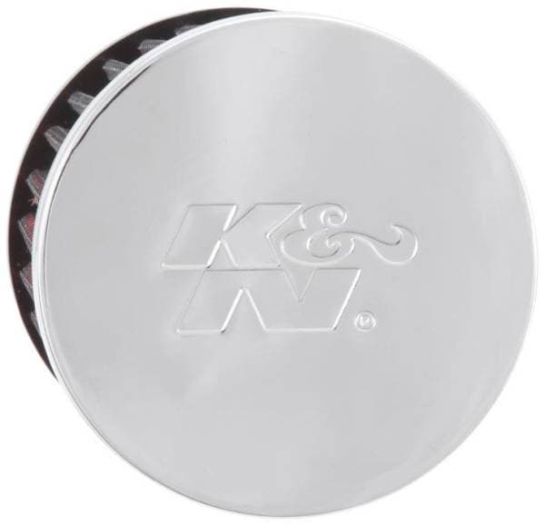 Constructed with a synthetic filter media, this crankcase vent filter comes with a K&N embossed chrome top and rubber base. The 1-1/4 inch diameter rubber flange is designed to push directly into the valve cover where venting is needed.; C.V. 3in.OD 2-1/2in.H PUSH IN-GM S