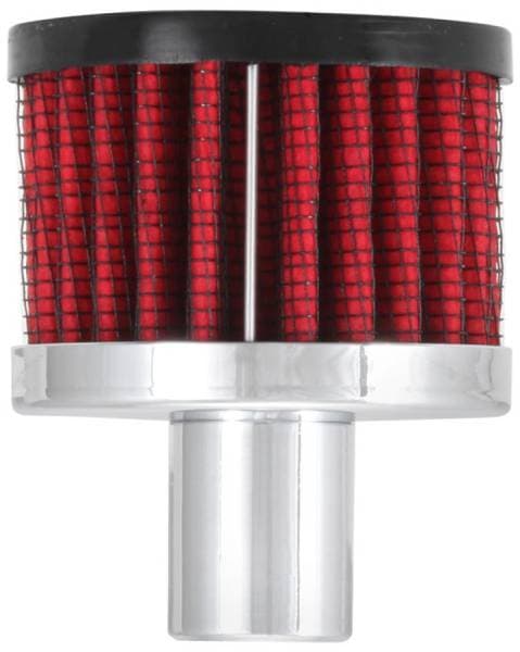 K&N crankcase vent filters are perfect for racing applications, vintage cars or individuals who want to add some aesthetics to their classic carbureted engine. The 62-1030 crankcase vent filter has a K&N embossed rubber top with a chrome-plated steel base. The 3/4 inch diameter zinc tube is designed to push in and clamp directly on to metal or plastic tubing where venting is needed. Constructed with a synthetic filter media it can be cleaned and reused repeatedly.