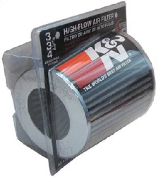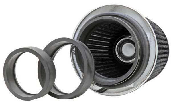 K&N adjustable fitting Universal Air Filters are made with flange inserts which adjust the filter's flange to one of three inside flange diameters. The flange on these filters is made with ultra-strong molded pliable rubber which absorbs vibration and allows for secure attachment. K&N clamp-on universal air filters are washable and reusable.