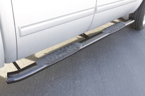 Product:Lund 01-13 Chevy Silverado 1500 Crew Cab 5in. Oval Curved Steel Nerf Bars - Black