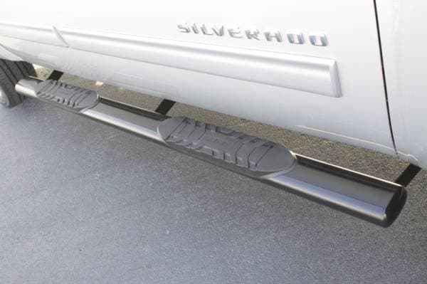 Product:Lund 01-13 Chevy Silverado 1500 Crew Cab 5in. Oval Straight SS Nerf Bars - Polished