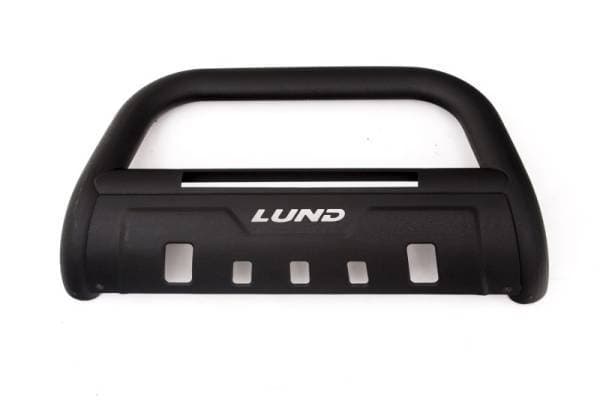 Whether the truck has aggressive lines or more refined curves, the LUND Revolution Bull Bar delivers extra front-end protection with its leading edge, chiseled three-dimensional design. LUND Revolution is constructed from heavy-gauge stamped steel with a light textured matte-black, powder coated finish. The rugged style features an integrated off-road LED light bar with a wiring kit, and installs with no drilling.