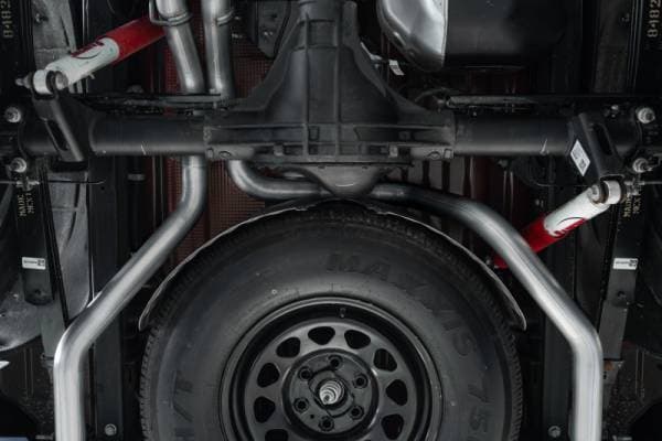 Armor Lite Cat Back Exhaust System; 2.5 in.; Incl. Front/Ext. Pipe/Muffler/Over Axle Pipes/Tailpipes/Hrdw; Dual Rear Exit; Aluminized; Does Not Fit w/2 Piece Driveshafts; 3in. Cat-Back. 2.5in. Dual Rear Exit. Aluminized Steel.