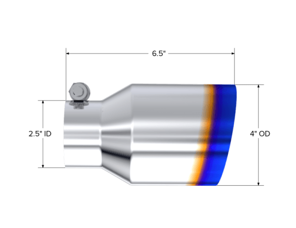 The exhaust tip is the crowning touch to your performance exhaust. It is your opportunity to really show off your personal style. That's why MBRP offers such a wide assortment of high quality, bolt on tips, because everybody has their own idea of style. MBRP offers T304 polished stainless, Black coated, Burnt End and Carbon Fiber tip options in various sizes. The tips are universal fit so be sure to measure your tail pipes outside diameter and match it to the MBRP tip INLET diameter before ordering.