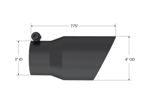 Armor BLK Exhaust Tip; 3 in. Inlet Diameter; 4 in. Outlet Diameter; 8 in. Length; Dual Wall; Angled; T304 Stainless Steel; Black Coated; Tip. 4in. O.D.. Dual Wall Angled. 3in. inlet. 8in. length. Black.