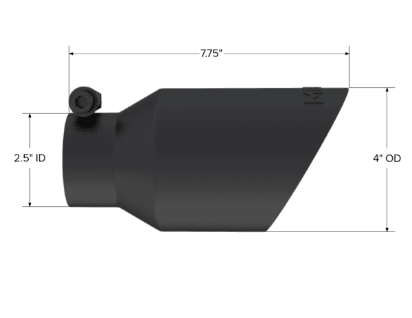 Armor BLK Exhaust Tip; 2.5 in. Inlet Diameter; 4 in. Outlet Diameter; 8 in. Length; Dual Wall; Angled; T304 Stainless Steel; Black Coated; Tip. 4in. O.D.. Dual Wall Angled. 2in. inlet. 8in. length. Black Coated.