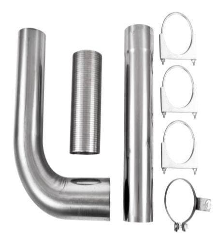 Smokers™ Stack Kit; 5 in.; Incl. Flex Pipe/Elbow/18 in. Extension Pipe/Hardware; Aluminized; Fits Full Size Pick-up Beds; Full Size Pick-up Beds. Single Stack Kit. 5" Smokers. Aluminized Steel.