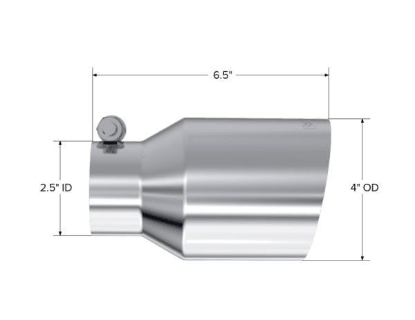 Armor Pro Exhaust Tip; 2.5 in. Inlet Diameter; 4 in. Outlet Diameter; Single Wall Angle Cut; 6.5 in. Length; T304 Stainless Steel; Universal 2.5" Inlet Exhaust Tip.