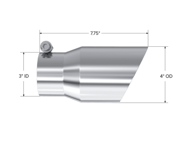 Armor Pro Exhaust Tip; 3 in. Inlet Diameter; 4 in. Outlet Diameter; 8 in. Length; Dual Wall; Angled; T304 Stainless Steel; Mirror Polished; Tip. 4in. O.D.. Dual Wall Angled. 3in. inlet. 8in. length. T304 Stainless Steel.