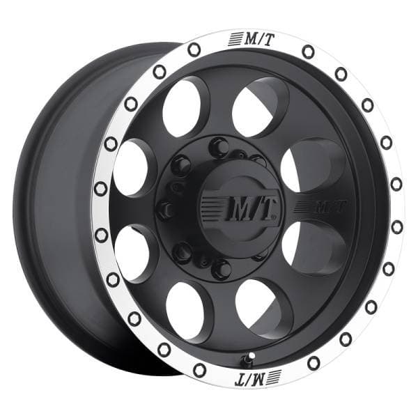This simulated bead lock wheel features the same great styling as our Classic III wheel with the finely machined bead lock styling coated in a protective Matte finish with large M/T logos. These attributes give the look and feel of a real bead lock without the expense. Great for 4x4 owners that are looking for off-road race or rock crawler styling.