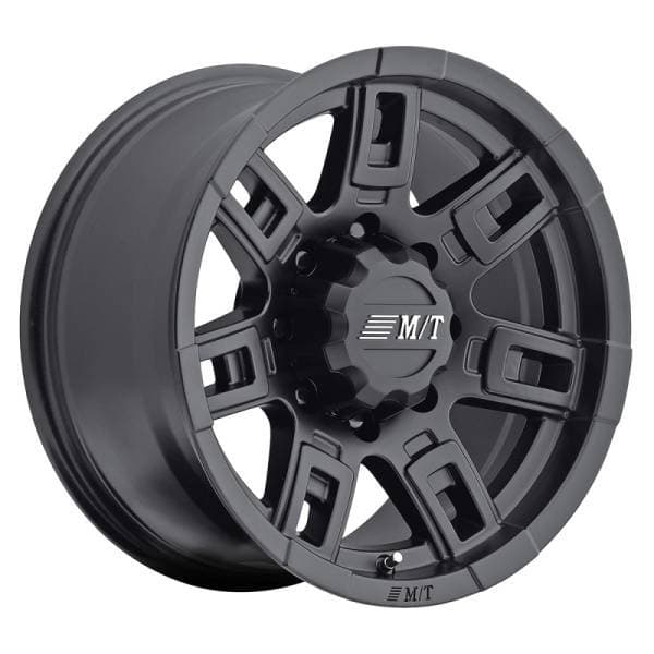The Mickey Thompson Sidebiter II is styled after the revolutionary tread-on-the-sidewall Mickey Thompson Sidebiter tire design. The 7-spoke design is a heavy duty performer with a black satin finish.