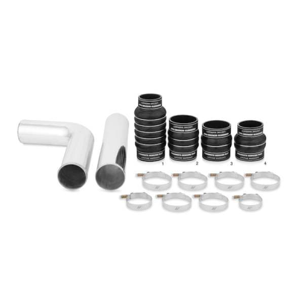 our engineers have maximized airflow by eliminating restrictive bends, allowing for a smooth and unimpeded airflow.The piping is constructed of mandrel bent 3.5 aluminum polished to a mirror finish.This kit includes Mishimoto silicone boots with DuraCore technology and constant-tension T-bolt clamps for accurate and consistent holding force.Mishimoto DuraCore technology is the synthetic material that comprises the innermost layer of all Mishimoto silicone diesel boots.Compared to normal silicone, DuraCore provides superior resistance to heat, pressure, fuel, and oil.This effectively increases the life of our boots by preventing leaks and blowouts.This package is rounded out with the Mishimoto intercooler featuring extremely durable cast aluminum end tanks and a bar-and-plate core, all designed to provide cool, dense air to your engine.Our intercooler features an increase in core volume and reduces pressure drop, which results in an overall increase in engine efficiency.All the components in this kit are engineered to last, just like your truck.Offered with either a black or silver core, the Mishimoto 5.9L Cummins intercooler kit is protected by our signature lifetime warranty.