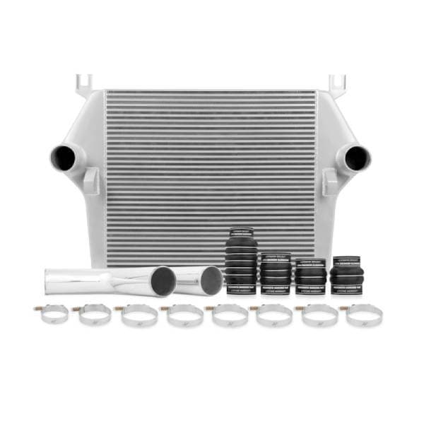 Mishimoto has released a performance intercooler kit for the 2003-2007 Dodge 5.9L Cummins.This kit includes everything you need to improve airflow, substantially decrease air-charge temperatures, reduce EGTs, and support your truck at any power level.The first key component is the Mishimoto intercooler piping; our engineers have maximized airflow by eliminating restrictive bends, allowing for a smooth and unimpeded airflow.The piping is constructed of mandrel bent 3.5 aluminum polished to a mirror finish.This kit includes Mishimoto silicone boots with DuraCore technology and constant-tension T-bolt clamps for accurate and consistent holding force.Mishimoto DuraCore technology is the synthetic material that comprises the innermost layer of all Mishimoto silicone diesel boots.Compared to normal silicone, DuraCore provides superior resistance to heat, pressure, fuel, and oil.This effectively increases the life of our boots by preventing leaks and blowouts.This package is rounded out with the Mishimoto intercooler featuring extremely durable cast aluminum end tanks and a bar-and-plate core, all designed to provide cool, dense air to your engine.Our intercooler features an increase in core volume and reduces pressure drop, which results in an overall increase in engine efficiency.All the components in this kit are engineered to last, just like your truck.Offered with either a black or silver core, the Mishimoto 5.9L Cummins intercooler kit is protected by our signature lifetime warranty.