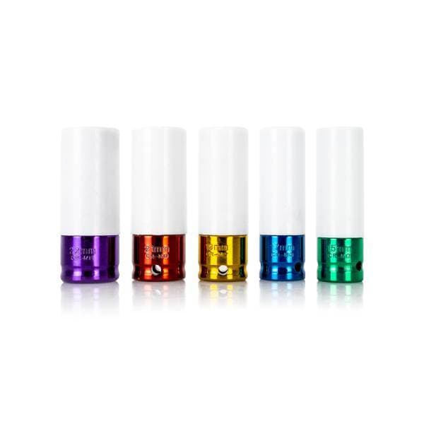 Protect your wheels with Mishimoto’s new 5-Piece Non-Marring 1/2" Wheel Nut Socket Set! If you’ve invested a lot into your vehicle’s wheels, it makes sense to ensure the finish is protected during wheel removal and installation. Our new non-marring wheel nut socket set includes a complete set of standard metric wheel nut sizes from 15mm to 22mm. The core of our sockets is impact-grade Chromoly steel which provides superior strength for high torque applications. These sockets are applicable with 1/2" hand tools or electric/pneumatic impact tools. These sockets also feature a hollow core design which allows for use on vehicles with extended studs. In addition, we’ve designed this set with 6-point ends, ensuring precise engagement and reduced slip during torquing. Mishimoto wheel nut sockets feature color-coded and laser-etched sizing to make identification easy. This kit is packaged with a small carrying case ensuring easy storage and transportation. As with all our products, this kit includes our signature Mishimoto Lifetime Warranty.