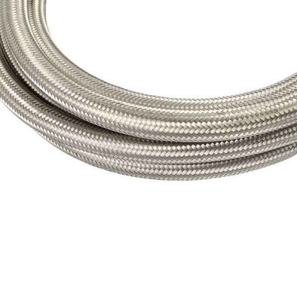 Extremely durable and flexible, this Mishimoto Braided Line is an ideal addition to your vehicle. Whether you’re replacing a factory rubber line or adding an oil cooling system, these stainless-wrapped fluid lines are available in multiple sizes and lengths to suit any application.These Mishimoto -AN lines feature a CPE rubber inner layer which provides a durable passageway for most fuels, oils, and engine coolants, while a woven stainless-steel inner jacket increases the pressure tolerance and durability. Along with unmatched abrasion resistance, the stainless-steel or black nylon braided outer jacket of this line adds unique style to your project. The available nylon outer braid will not abrade soft materials such as plastic or aluminum in confined spaces.Our braided -AN lines feature an operating temperature range from -40°F to 300°F and pressure rating of up to 1,000 PSI, making them applicable for most fluids or air passage systems on your vehicle. As with all our products, this Mishimoto Stainless-Steel Braided Line is covered by our Lifetime Warranty.