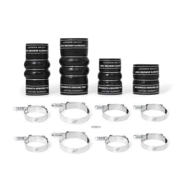 Mishimoto is proud to release a direct-fit silicone boot kit with DuraCore™ technology designed specifically for the 2017-2019 Chevrolet/GMC 6.6L L5P Duramax. Mishimoto DuraCore™ technology is a synthetic material that comprises the innermost layer of all Mishimoto silicone diesel boots. Compared to normal silicone, DuraCore™ provides superior resistance to heat, pressure, fuel, and oil. This effectively increases the life of our boots by preventing leaks and blowouts. To add even more reliability, these couplers feature stainless-steel reinforcing rings to prevent expansion under high pressure that may result in a blowout and lost boost pressure. This kit also includes Mishimoto stainless-steel constant-tension T-bolt clamps for a reliable and consistent seal. As with all our products, this boot kit is protected by the Mishimoto Lifetime Warranty.