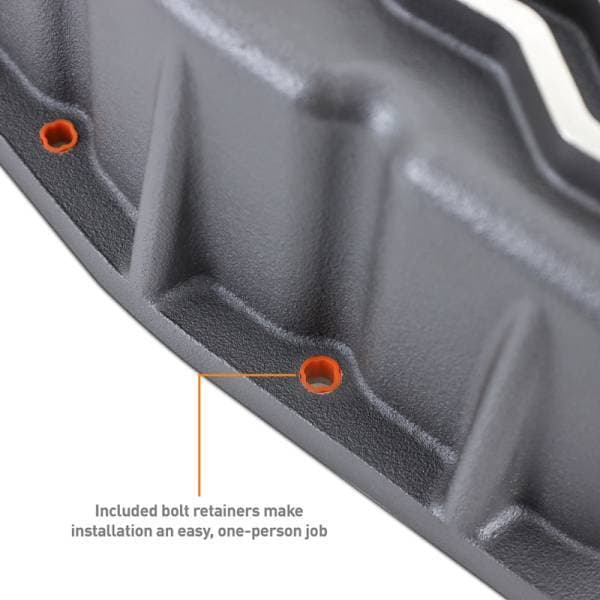 This Mishimoto Aluminum Transmission Pan is a direct-fit, high-performance upgrade for your 2007.5+ Dodge Ram 6.7L Cummins. Cast from high-quality aluminum and powder coated Gunmetal Gray, our transmission pan is a robust and long-lasting upgrade for your vehicle's transmission. With a sleek design and bottom ribs, this pan not only adds to the overall aesthetic of your truck but also provides improved cooling performance.----This transmission pan features internal baffles that reduce sloshing and enhance heat dissipation, resulting in smoother transmission performance. Our casting features a precision-machined sealing surface, ready to accept either a factory-style gasket or sealant of your choice (not included). Additionally, the Mishimoto 2007.5+ Dodge Ram 6.7L Cummins Aluminum Transmission Pan adds an extra 2.6 quarts of ATF to help maintain optimal transmission operation.----Fed up with the frustration of trying to hold up a transmission pan with one hand while threading the fasteners in with the other? Mishimoto has you covered with pre-installed bolt retainers that hold the fasteners in the pan, allowing you to easily thread the bolts without dropping them on the ground, your head, or worse, that pan of nasty transmission fluid you just drained. Additionally, our pan comes equipped with a magnetic drain plug for easy draining and a 1/8-inch NPT port and plug for temperature sensors to make servicing your transmission and monitoring temperatures a breeze.----This direct-fit upgrade offers affordable durability and helps maintain smooth transmission operation, ensuring a long life for your transmission. Like all Mishimoto products, this transmission pan is backed by the Mishimoto Lifetime Warranty.