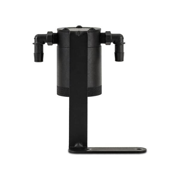 By installing our catch can in line with your PCV system, the 50-micron bronze filter captures oily particles and allows them to condense until they become heavy enough to drip into the canister to be collected instead of flowing back into your engine. This leaves the air flowing back into your intake system clean and ready to be burned again. The catch can mounts with a sturdy 3-mm thick steel bracket in a convenient and serviceable location, allowing you to easily empty the waste oil. The pre-molded hoses with factory style quick-disconnects make installation a breeze, and even fit with the factory engine cover.