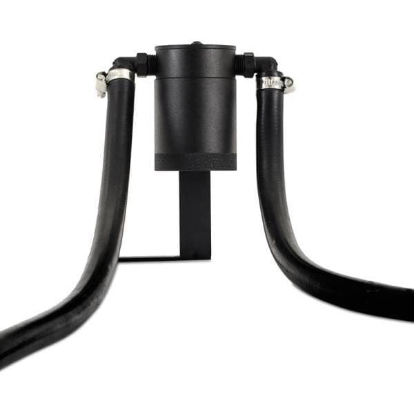 Carbon buildup is an enemy of any motor, and the Mishimoto Direct-Fit Oil Catch Can system for your 2011+ Ford F-150 is the defense. Modern vehicles use a PCV, or “Positive Crankcase Ventilation", system to capture the vapors that escape past the piston rings into the crankcase of your engine and recirculate them back into the intake system to be burned again. While this is much better for the environment, it’s not as great for your engine. In doing so, these vapors carry remnants of oil and unburned fuel, which make their way into your intake system, causing multiple problems. The first and largest problem is that the oil particles being carried in these vapors coat your intake system, including the intake manifold and intake valves. Over time, this will gum up and turn into carbon buildup. Direct-injection engines, like the EcoBoost, are especially prone to severe carbon buildup on the intake valves. The second issue is that those oily vapors being introduced back into the cylinder during combustion can reduce the overall octane rating of the fresh fuel being provided, causing pre-detonation and knocking. This is where the Mishimoto Direct-Fit Oil Catch Can system comes into play. By installing our catch can in line with your PCV system, the 50-micron bronze filter captures those oily particles and allows them to condense until they become heavy enough to drip into the canister to be collected instead of flowing back into your engine. This leaves the air flowing back into your intake system clean and ready to be burned again. The catch can mounts with a sturdy 3-mm thick steel bracket in a convenient and serviceable location, allowing you to easily empty the waste oil. The pre-molded hoses with factory style quick-disconnects make installation a breeze, and even fit with the factory engine cover. As with all our products, this catch can is backed by our signature Mishimoto Lifetime Warranty.
